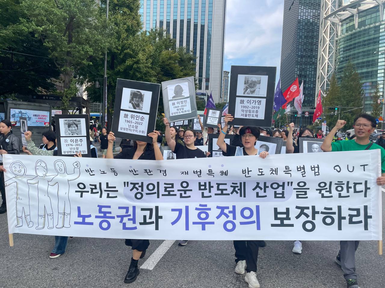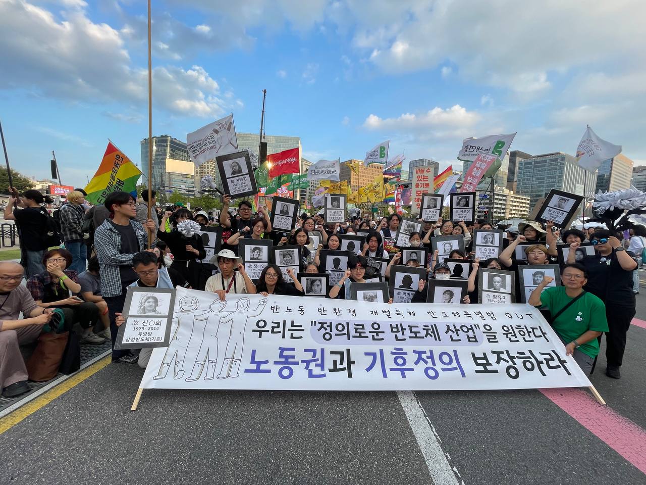 삼성은 반도체 산업을 위해 매년 50만 톤이 넘는 유해화학물질을 쓰고, 수천 톤의 오염물질을 배출합니다. 연간 백만 톤의 폐기물 처리는 더 취약한 하청 노동자들이 떠맡습니다. 또 엄청난 전기와 하루 수십만 톤의 물을 쓰며 지역 생태계와 공동체를 파괴합니다.